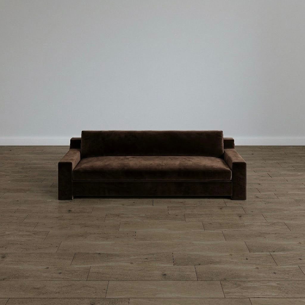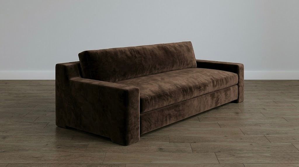Durant sofa has a refined, minimalist modern style with subtle vintage influence, especially reminiscent of mid-century and contemporary luxury interiors.