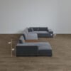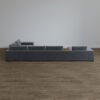 The armrests are low and squared, matching the sofa’s minimalist geometry. The entire piece sits close to the ground with hidden legs, enhancing its sleek, grounded presence.