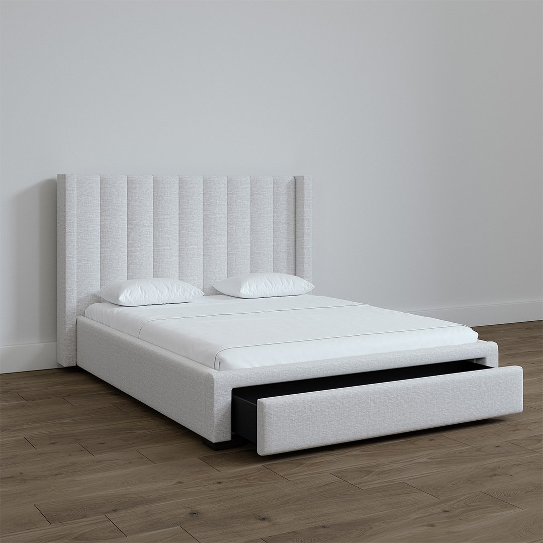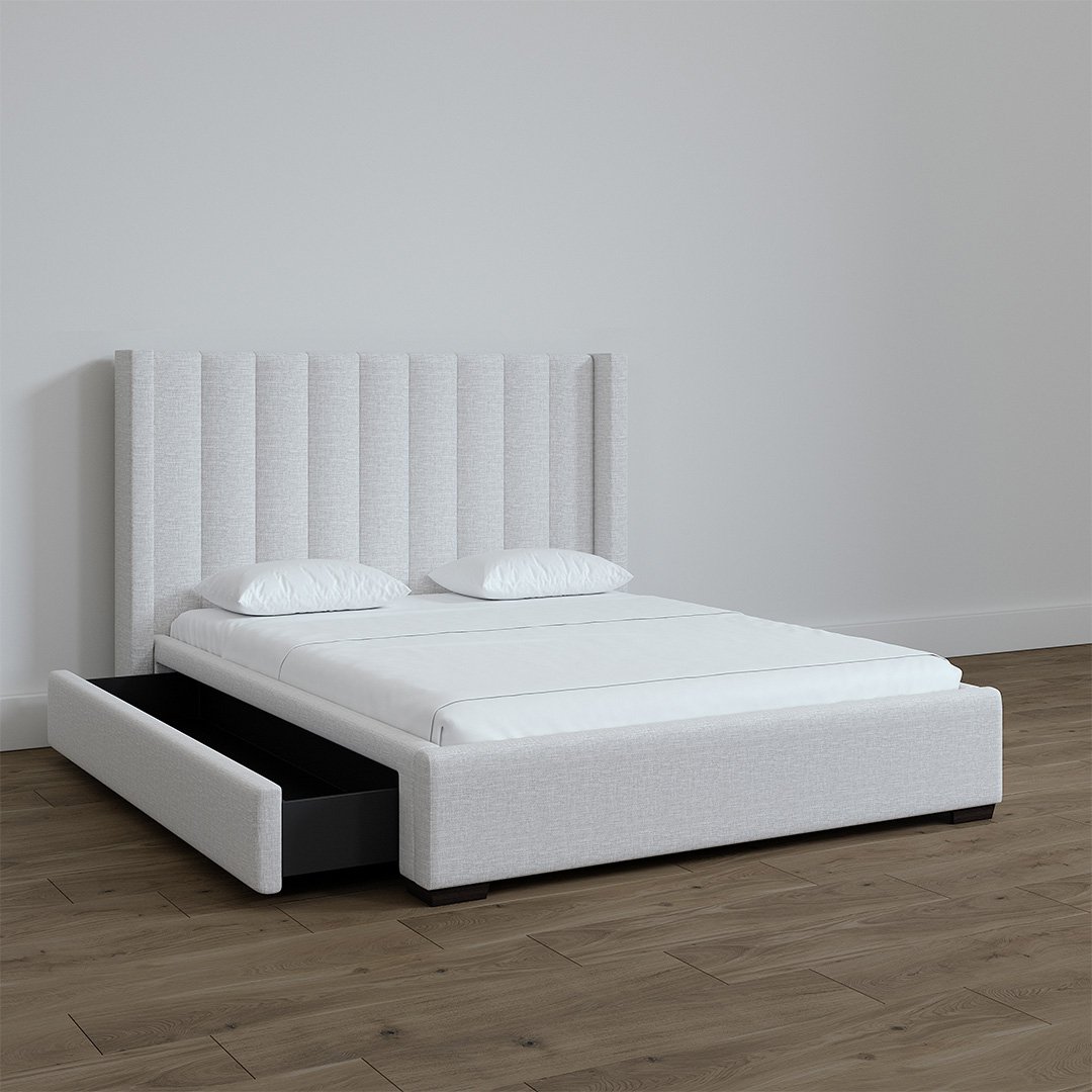 Salina with Vertical Stitch – A Canadian take on Italian contemporary design with one of a kind vertical Stitch & customizable from headboard height to endless color options.